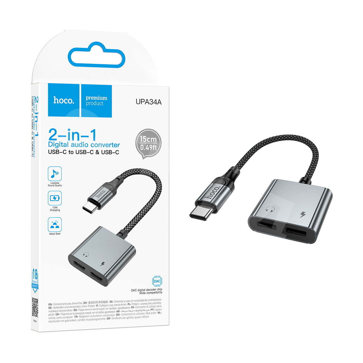 Адаптер Type-C - Type-C Hoco UPA34A (оплетка нейлон) Серый