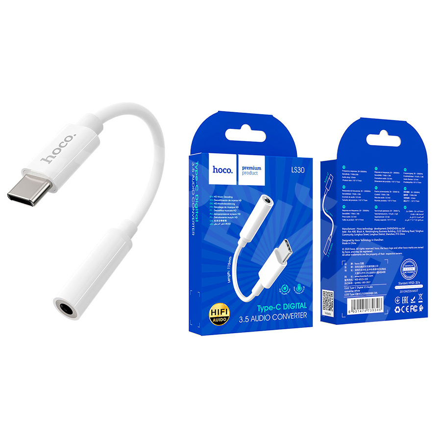 Адаптер Type-C - "3,5 мм" Jack Hoco LS30 Белый