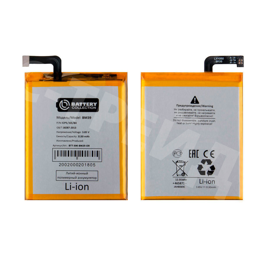 Аккумулятор для Xiaomi Mi 6 (BM39) - Battery Collection (Премиум)