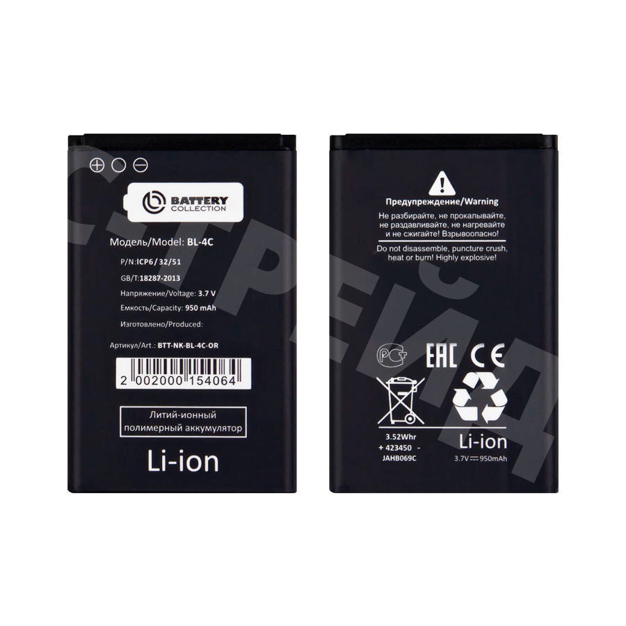 Аккумулятор для Nokia 6100/1202/1661/2220S/2650/2690/5100/6101/6125 (BL-4C) - Battery Collection (Премиум)