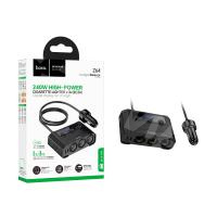 Автомобильный разветвитель прикуривателя Hoco Z64 (240W, 3 гнезда, 2Type-C) Черный