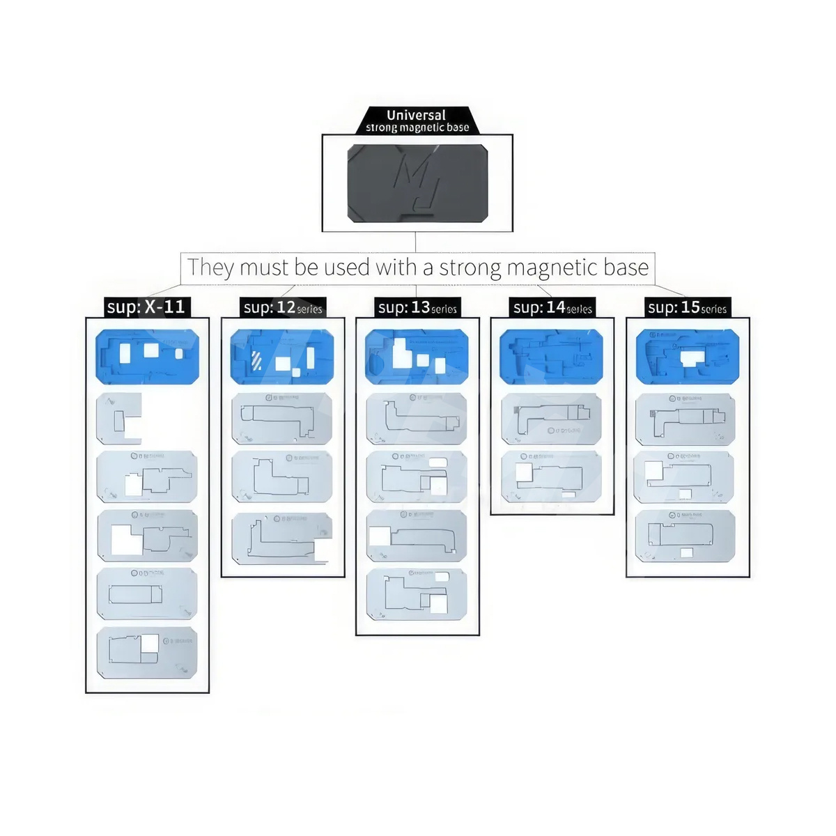 Платформа для реболлинга Mijing Z20 Pro для iPhone X/Xs/Xs Max/Xr/11/11 Pro/11 Pro Max/12/12 mini/12 Pro/12 Pro Max/12/12 mini/13 Pro/13 Pro Max/14/14 Plus/14 Pro/14 Pro Max/15/15 Plus/15 Pro/15 Pro Max с межплатными трафаретами