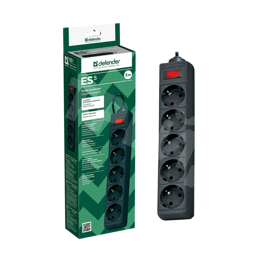 Сетевой фильтр Defender ES (5 розеток, 5 м) Черный
