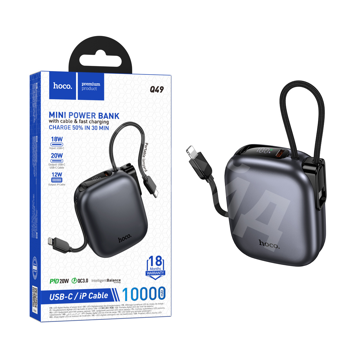 Поддержка быстрой зарядки Power Delivery (PD) мощностью до 20 Вт позволяет ускорить процесс зарядки. Ёмкость 10 000 mAh обеспечивает 2–3 полные зарядки смартфона. Встроенный LCD-дисплей показывает точный уровень заряда аккумулятора, чтобы вы всегда были в курсе оставшейся энергии. Лёгкий и удобный, Hoco Q49 отлично подойдёт для поездок и ежедневного использования.