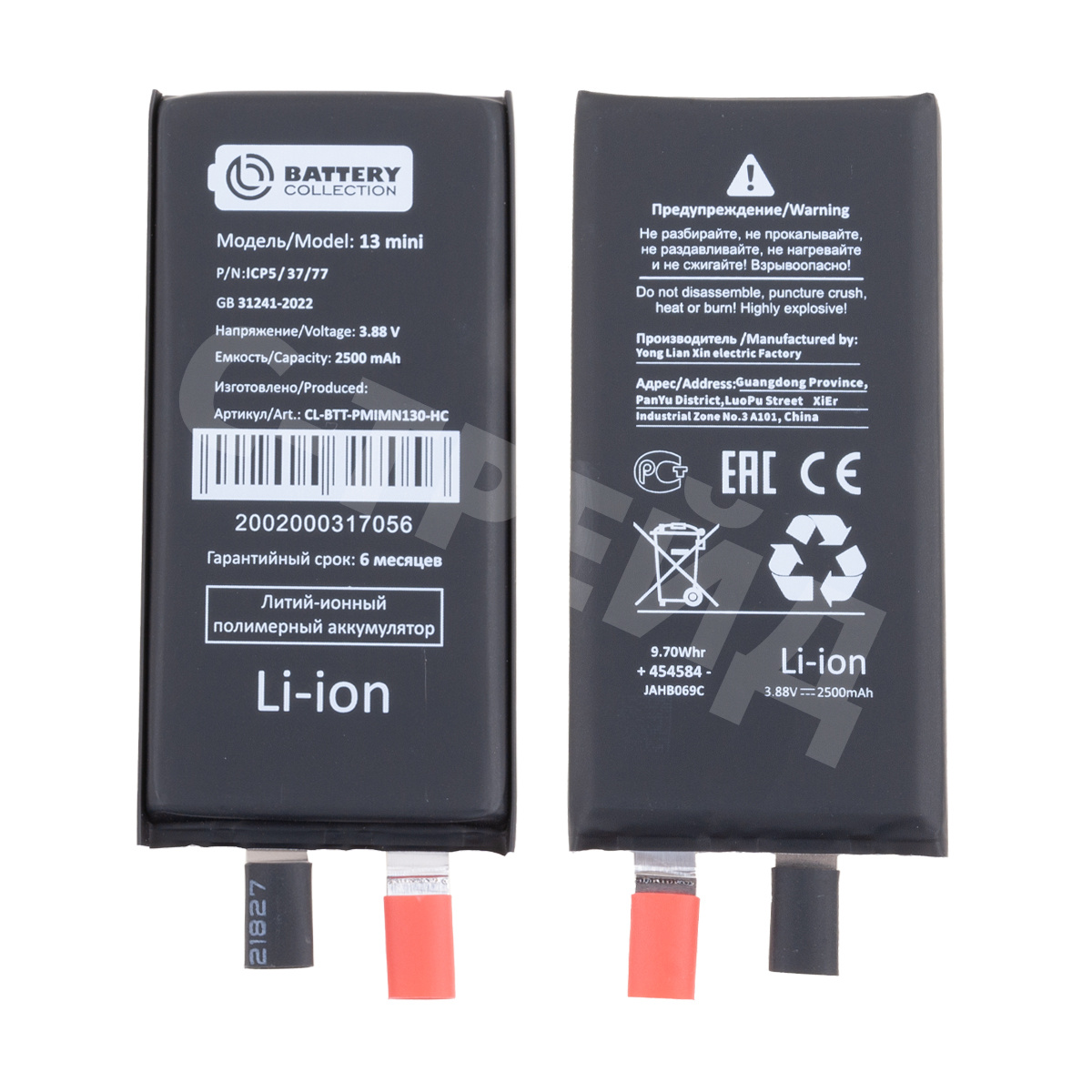 Ячейка (банка) Аккумулятора для iPhone 13 mini - усиленная 2500 mAh - Battery Collection