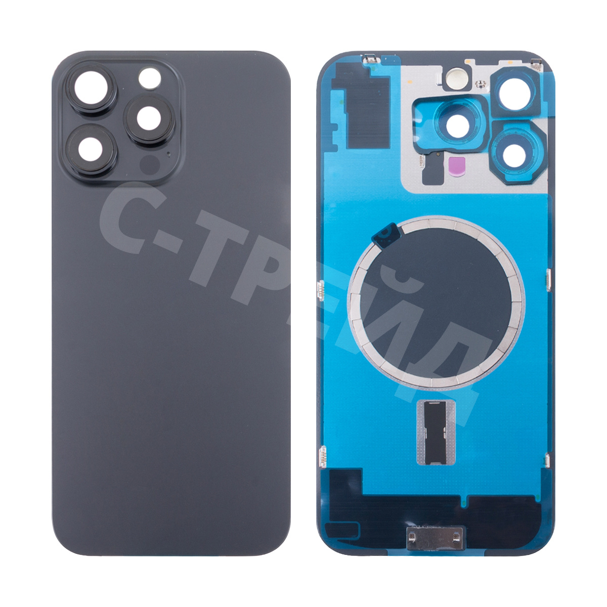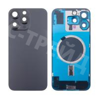 Задняя крышка для iPhone 16 Pro Max (A3296) в сборе со стеклом камеры Черный (стекло, монолит, MagSafe, логотип) - Премиум