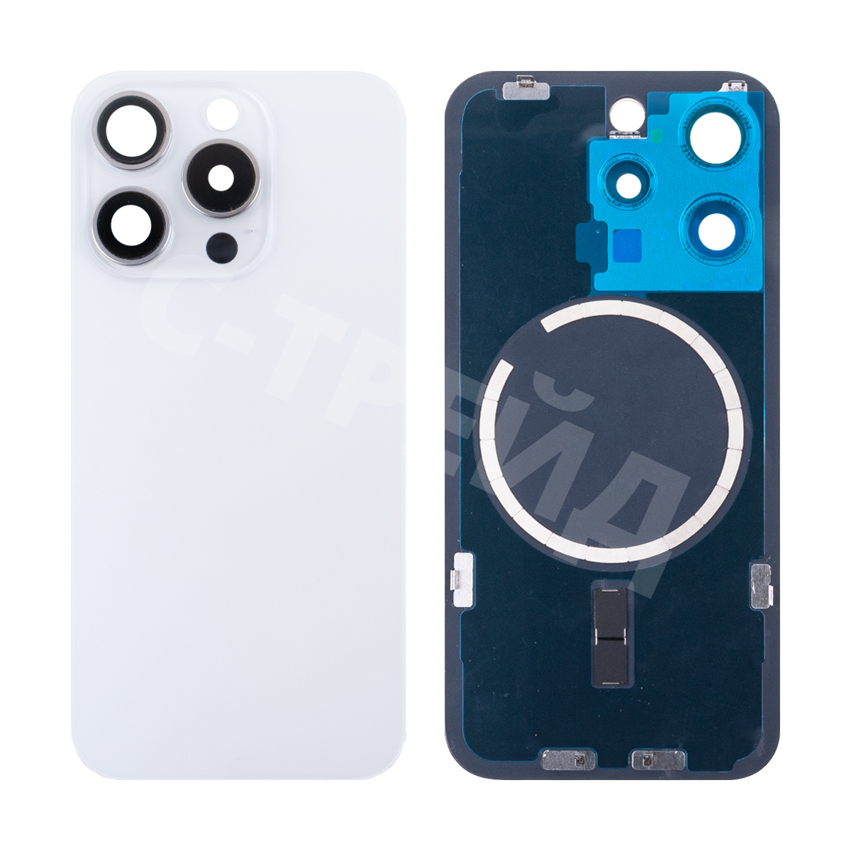 Задняя крышка для iPhone 15 Pro (A3102) в сборе со стеклом камеры Белый (стекло, монолит, MagSafe, логотип) - Премиум