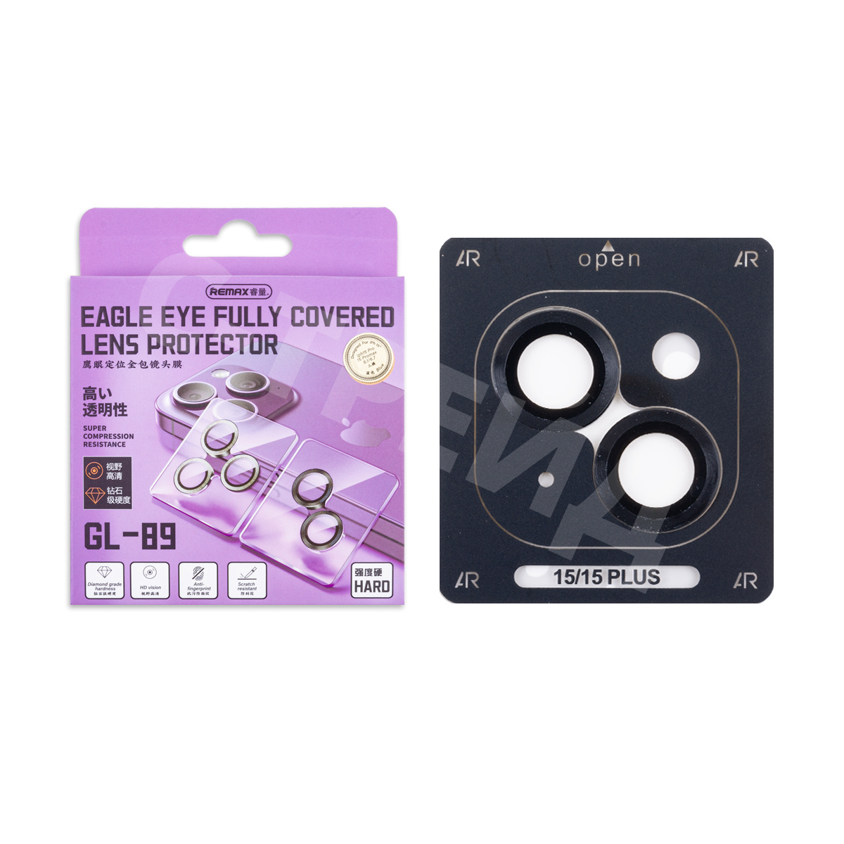 Защитное стекло линзы камеры Remax GL-89 для iPhone 15/15 Plus (комплект 2 шт.) Черный