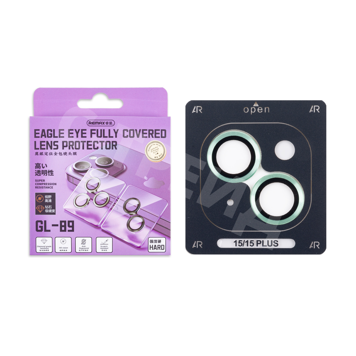 Защитное стекло линзы камеры Remax GL-89 для iPhone 15/15 Plus (комплект 2 шт.) Зеленый