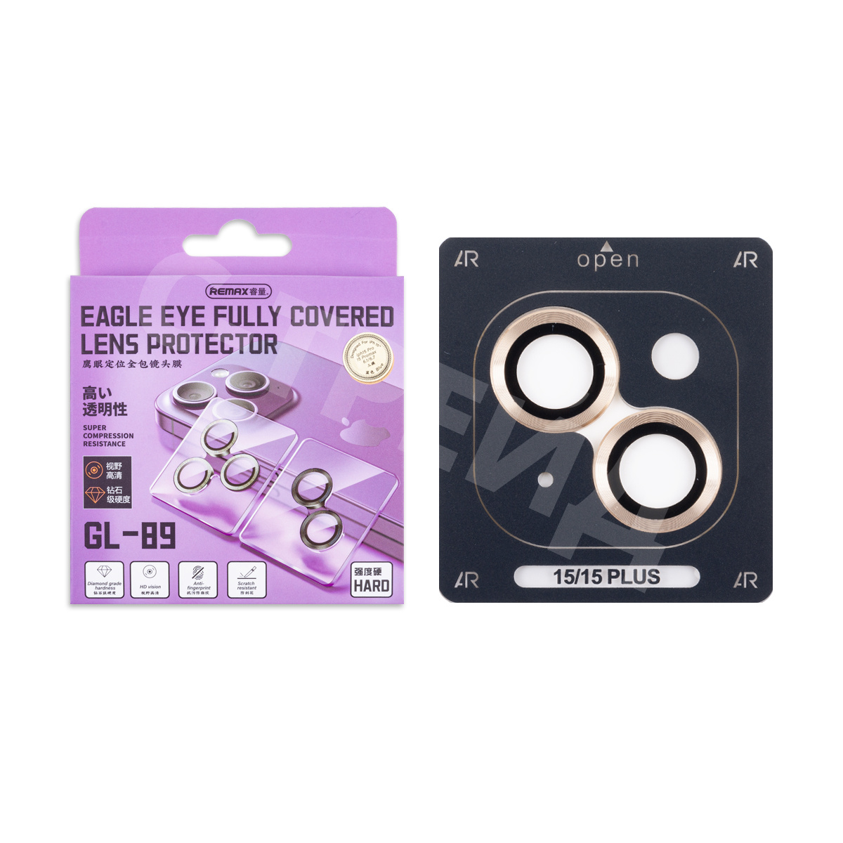 Защитное стекло линзы камеры Remax GL-89 для iPhone 15/15 Plus (комплект 2 шт.) Желтый