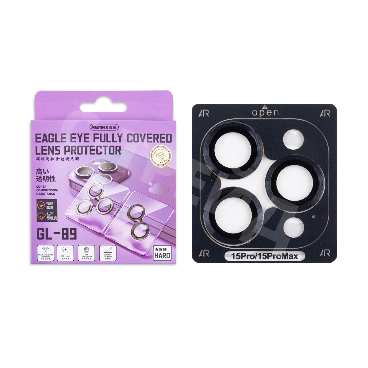 Защитное стекло линзы камеры Remax GL-89 для iPhone 15 Pro/15 Pro Max (комплект 3 шт.) Черный